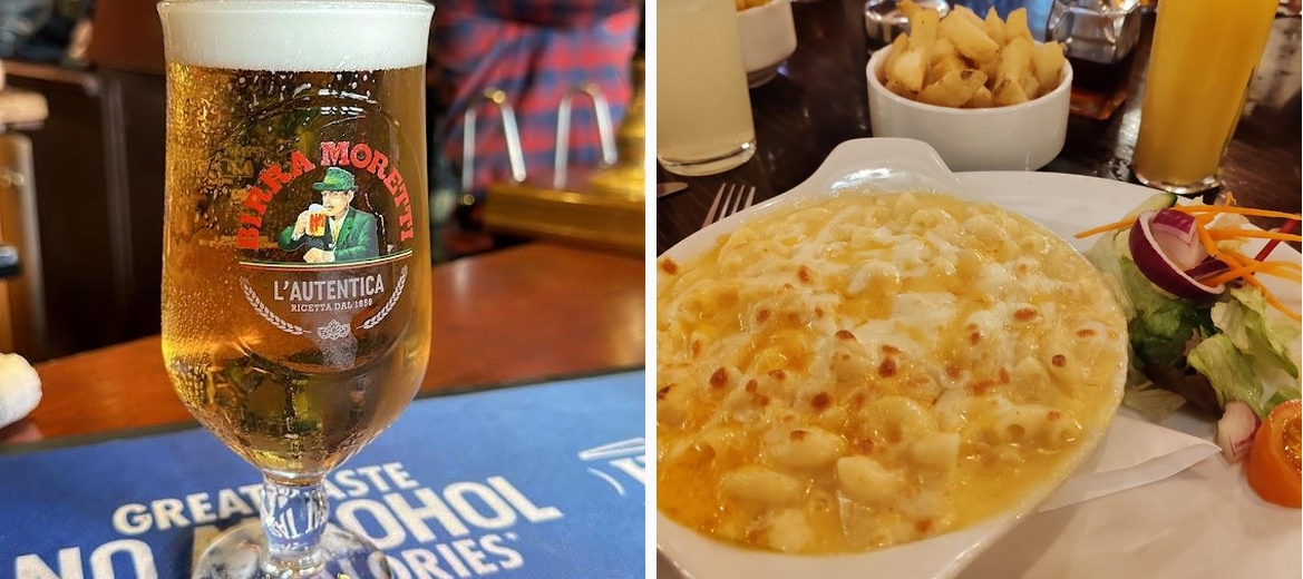 Don't miss the Aberdeen Angus Sirloin steak or the Chicken Balmoral in Whisky Sauce. The spicy nachos make for a great starter, while the battered haddock and macaroni cheese are local favorites.